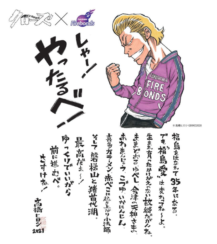 某プロバスケチームの周年企画として、クローズというヤンキー漫画を描いている高橋ヒロシ先生を口説き落とし、見事オリジナル描きおろし原画をゲット!その原画で様々な商品を作りました。一部コアなファンから支持を受ける。自分の好きな漫画家さんと仕事が出来て楽しかったです。